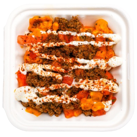 DELICIOUS POTATOES SMOTHERED WITH MEXICAN-STYLE QUESO BLANCO, GROUND BEEF, TOMATOES, SOUR CREAM AND OUR SPECIALLY BLENDED GUAC SEASONING. (130 Cals)